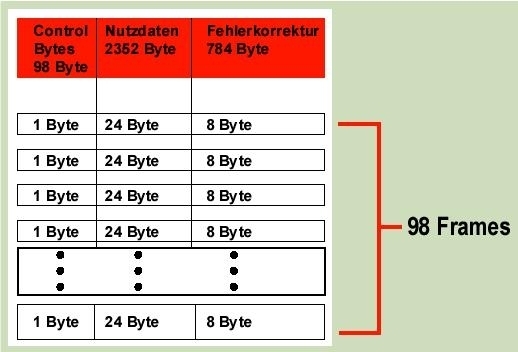 | Aufbau eines Sektors: 98 Frames bilden einen Sektor. |